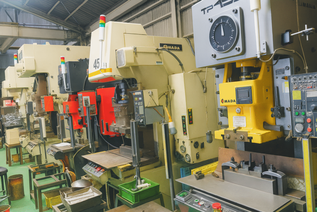 プレス機は15Tonから150Tonまで設備を備えております。